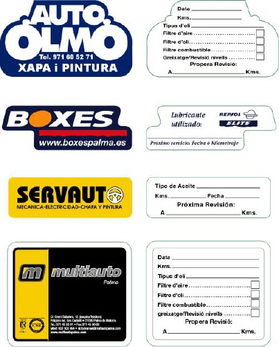 Para la produción y comercialización de pegatinas para el control de mantenimiento de vehículos en talleres mecánicos, electrostáticas, removibles, adhesivo permanente etc